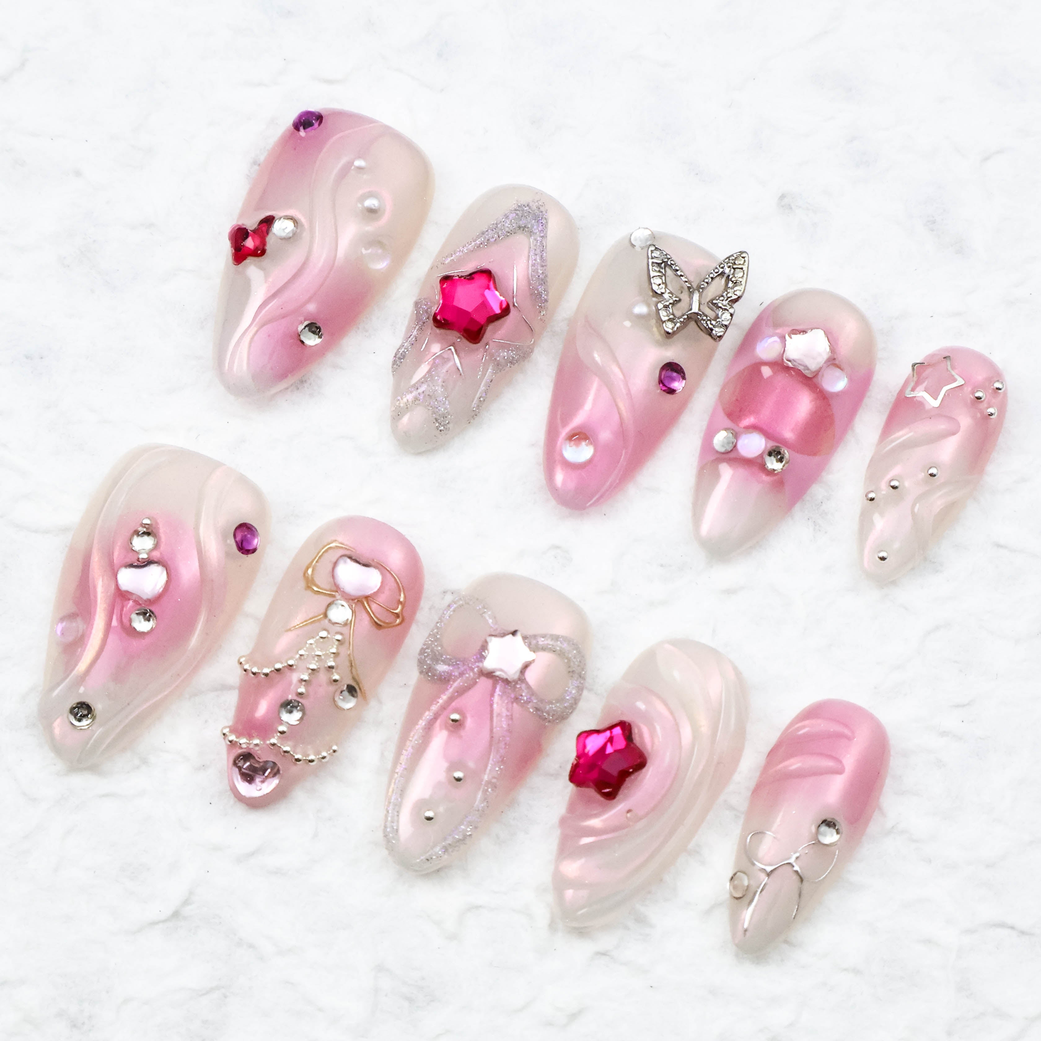 Try the hottest new manicure trend with MIXX Fantasy 3D painting Ready-To-Wear Nails. These super-dimensional nails are 100% hand made painting with a complex flower and butterflies vivid pattens that imparts a textured and natural finish, just same as the popular salon high cost nails.