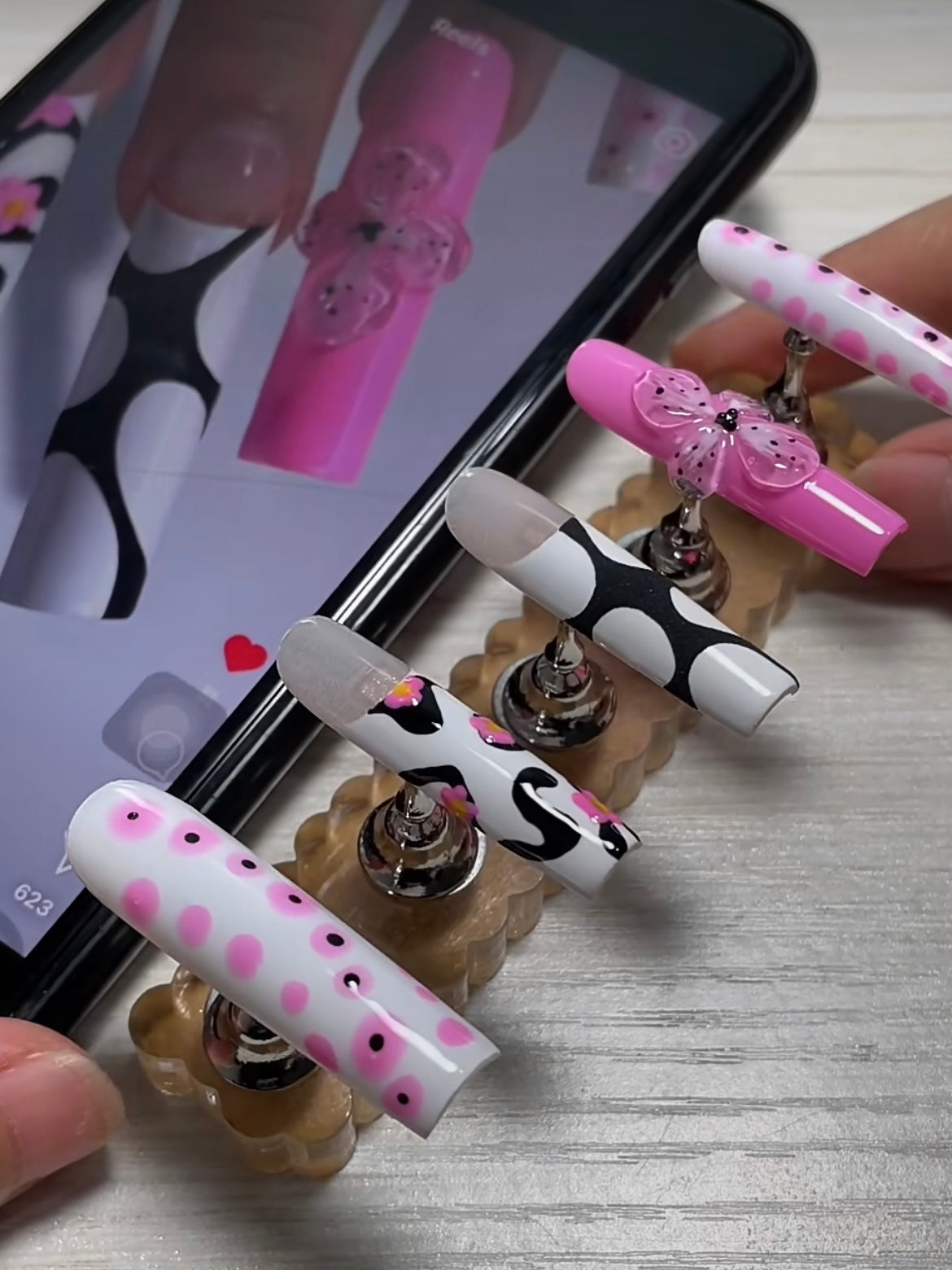 STEP2: Upload clear target nails picture and we will remake it as press on for you. ( Any design from Influencies/ celebrities/ salon manicure )