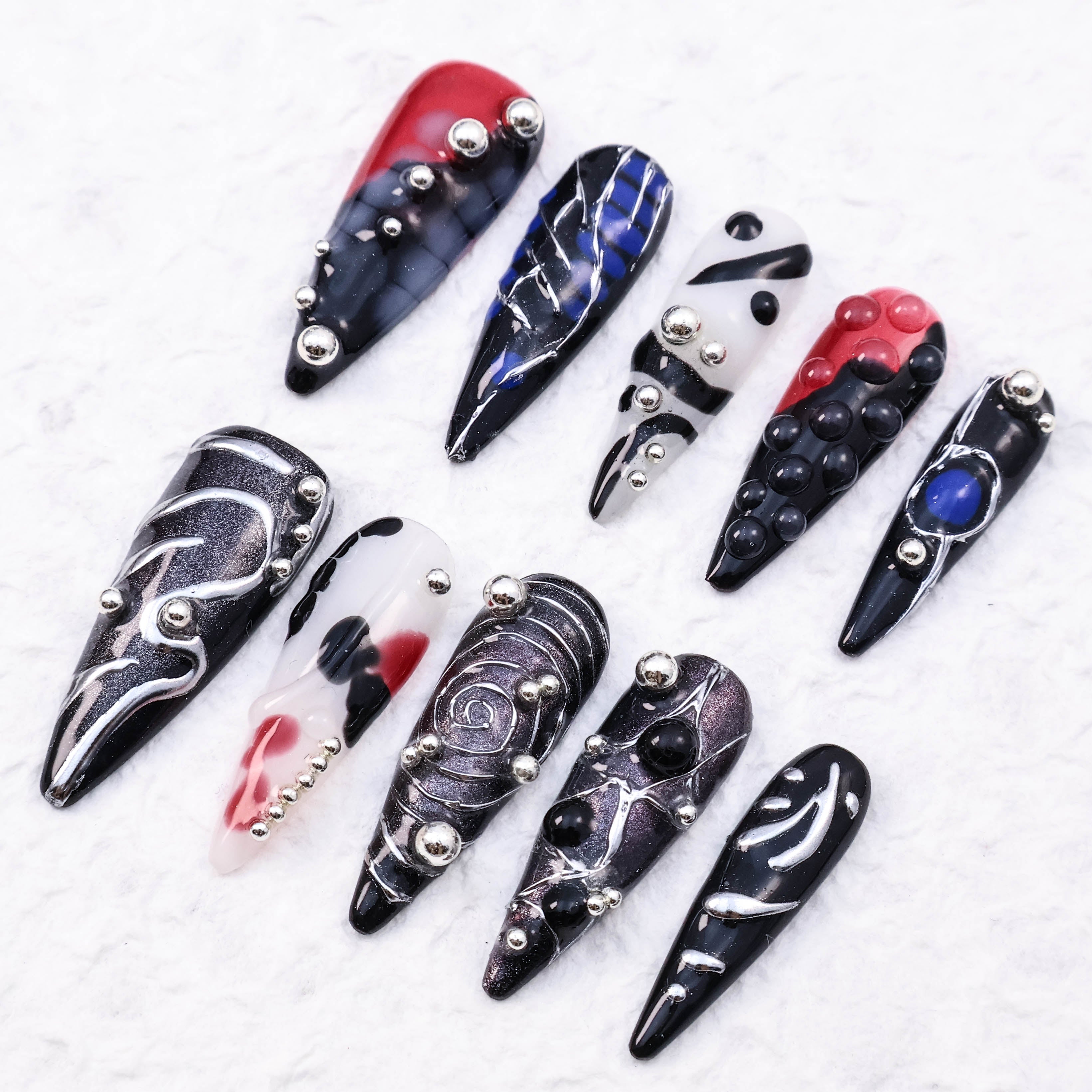Treat yourself to a high-end manicure with these rewearable, prestigious, jeweled press-on nails. 100% hand made guarantee! MIXX exclusive manicurists with 5+years work experiences makes every piece nail unique and superior. These salon quality sculpted nails are reusable up to 10 times!