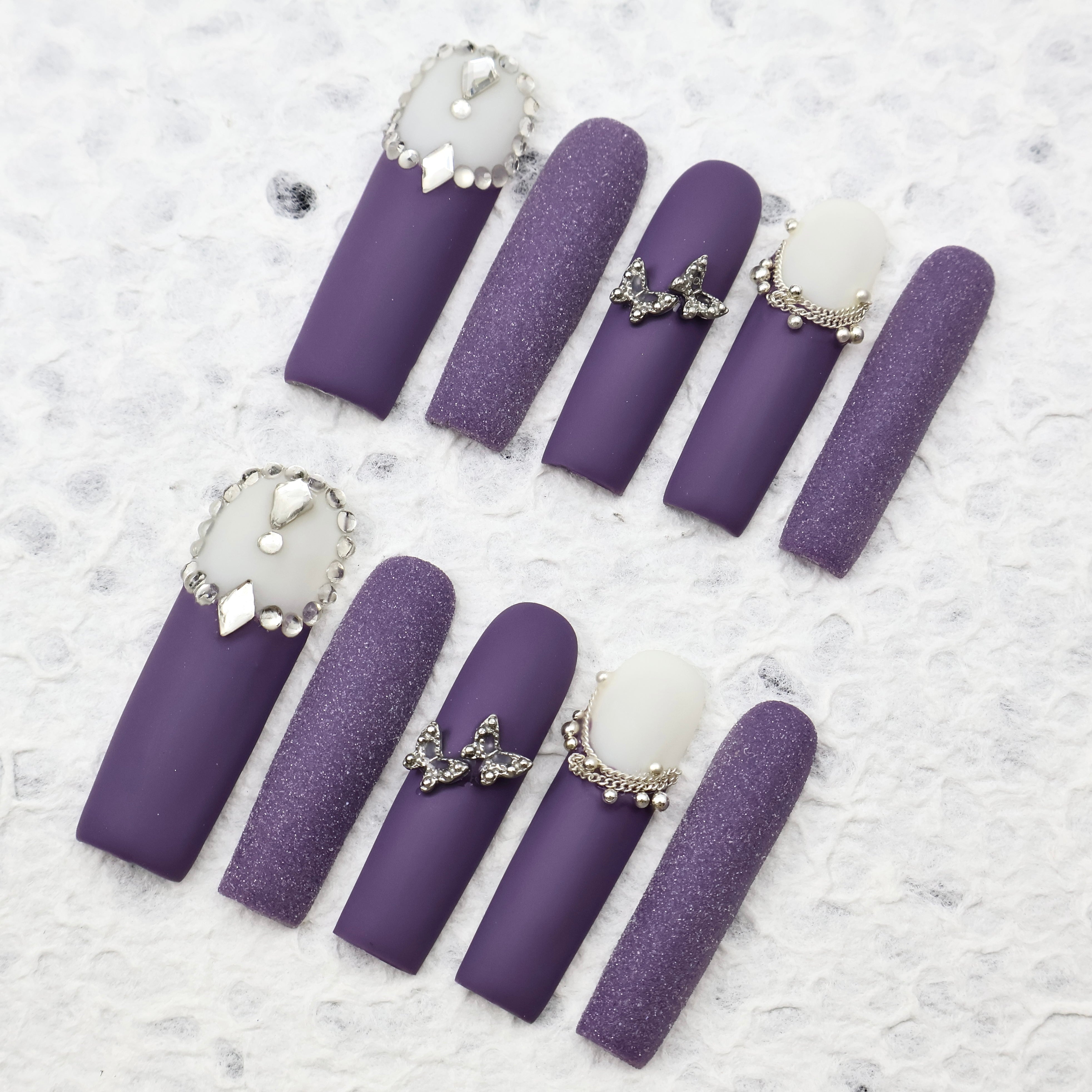 Treat yourself to a high-end manicure with these rewearable, prestigious, jeweled press-on nails. 100% hand made guarantee! MIXX exclusive manicurists with 5+years work experiences makes every piece nail unique and superior. These salon quality sculpted nails are reusable up to 10 times , and last for a week.