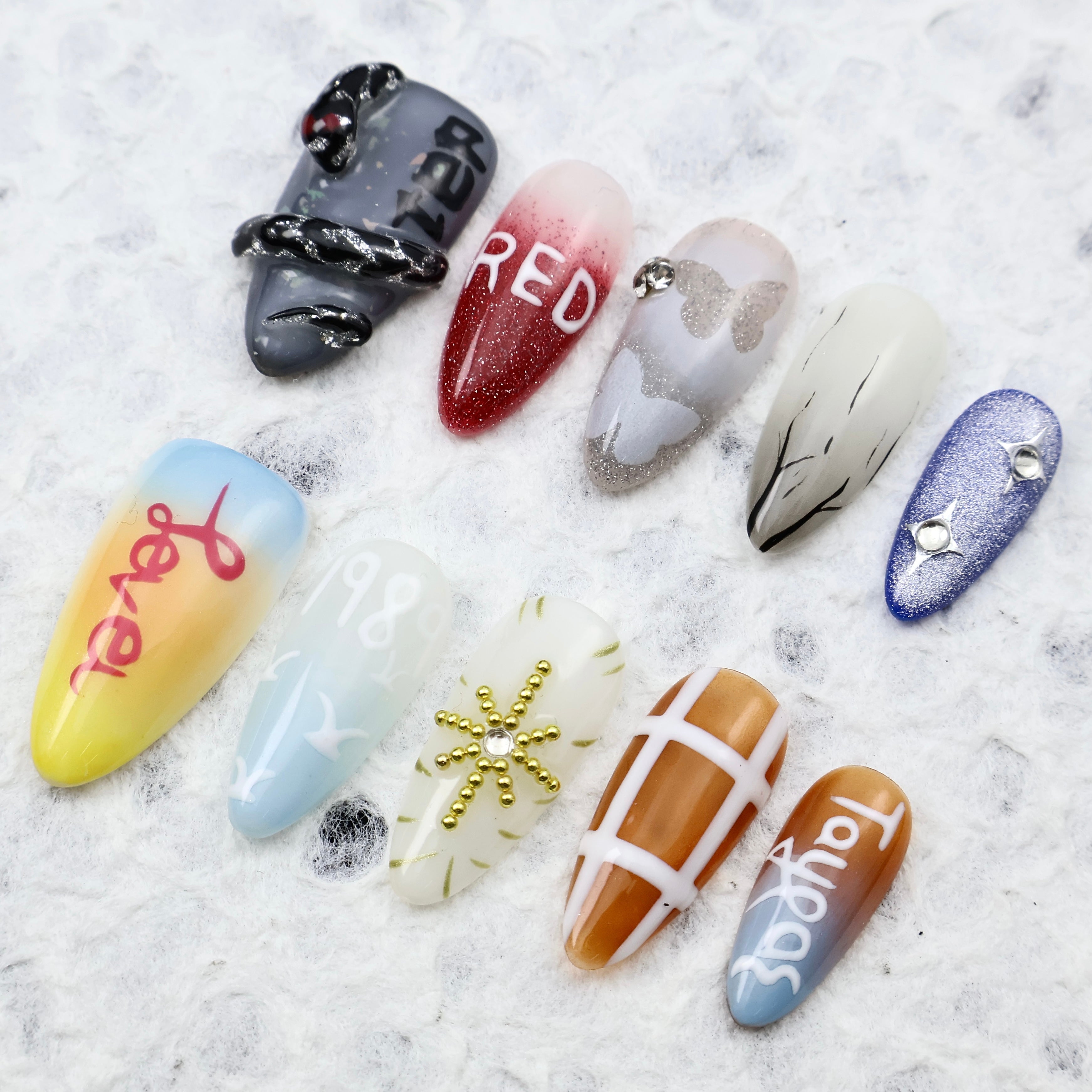 KNOCK KNOCK! ALL Taylor Swift Fans! Declaring it one of swifties favorite designs!! This Limited-Edition design for ALL SWIFTIES has a glamous look with a twist. 100% handcraft created by MIXX exclusive manicurist. “It combined every albums elements” with “her dress and lights in Eras”. Be the one who was inspired and holds all good memories when enjoying Taylor's music.